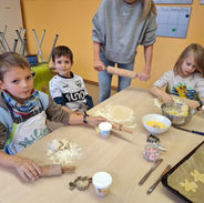 Auch in diesem Schuljahr duftete es in den letzten Wochen immer wieder herrlich nach frisch gebackenen Plätzchen. Die Klassen 1a, 1b und 2 durften jeweils freitags mit tatkräftiger Unterstützung der Eltern in der Mensa Plätzchen backen. Aus dem von den Eltern vorbereiteten Teig haben die Kinder in Kleingruppen Plätzchen ausgestochen und kunstvoll verziert. Vielen Dank an alle Helferinnen! Die Gruppen, die nicht beim Backen waren, haben währenddessen im Klassenzimmer fleißig Weihnachtsdekoration gebastelt. Allen Beteiligten bereitete die Aktion viel Spaß.